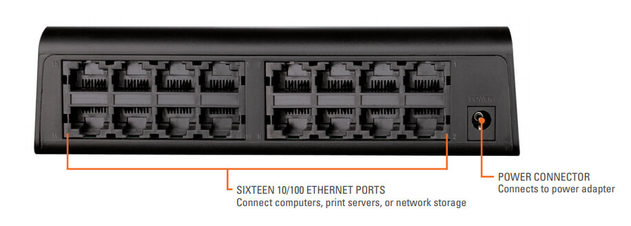 16 Port Switch  D-Link DES-1016A/E 16-Port 10/100M unmanaged Standalone 16 Port Switch -PLASTIC CASING
