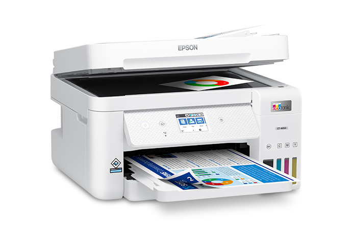Your business needs a printer that’s fast, affordable, easy to use, and has premium productivity features. That’s why we developed the EcoTank ET-4850 — an innovative cartridge-free solution that uses high-capacity, easily refillable ink tanks. The ET-4850 offers fax, productive paper handling, a high-resolution flatbed scanner, and convenient 2.4″ color touchscreen — making it the perfect printer for your office.