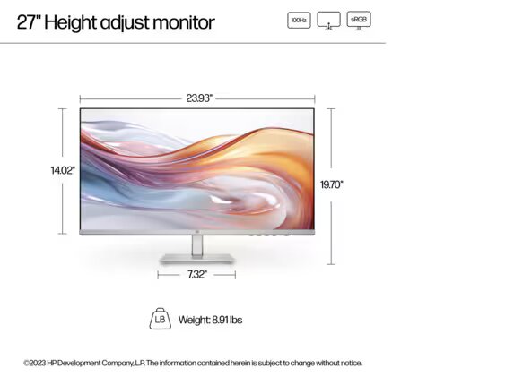 HP Series 5 27 inch FHD Height Adjust Monitor – 527sh
