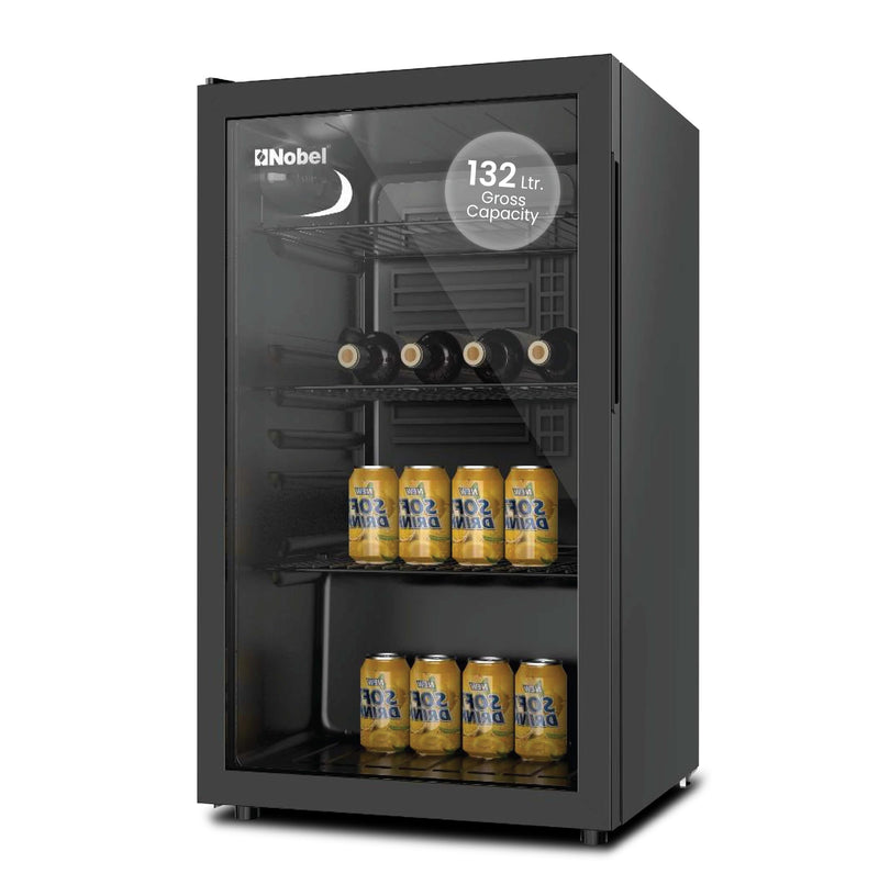 NOBEL BOTTLE CHILLER Black 132 LTR Glass Door METAL SHELF WITH WOOD FRONTAL FRAME NBC140RH