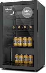 NOBEL BOTTLE CHILLER Black 132 LTR Glass Door METAL SHELF WITH WOOD FRONTAL FRAME NBC140RH