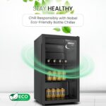 - My Performance and Added Value With a 0.7A rated current, this compact and elegant bottle cooler is extremely energy efficient. The Gross capacity is 140 liters and Net Capacity is 132 liters. It saves you money on utility costs! It can be readily carried and installed in various areas because of its compact design. It can also be put freestanding in any area. Unauthorized entrance is prevented by the lock on the right-hand door.