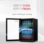 - My Features This compact bottle cooler can be used for commercial and home usage for parties and events! Energy-saving with a silent operation of 40dB, numerous cooling modes and internal LED lighting to clearly see your drink. 3 robust and adjustable wire shelves are kept in place by metal hinges for added safety and have a large loading capacity for soda, juices, and water. 1 glass door that comes with one bottom lock and key.Temperature control included