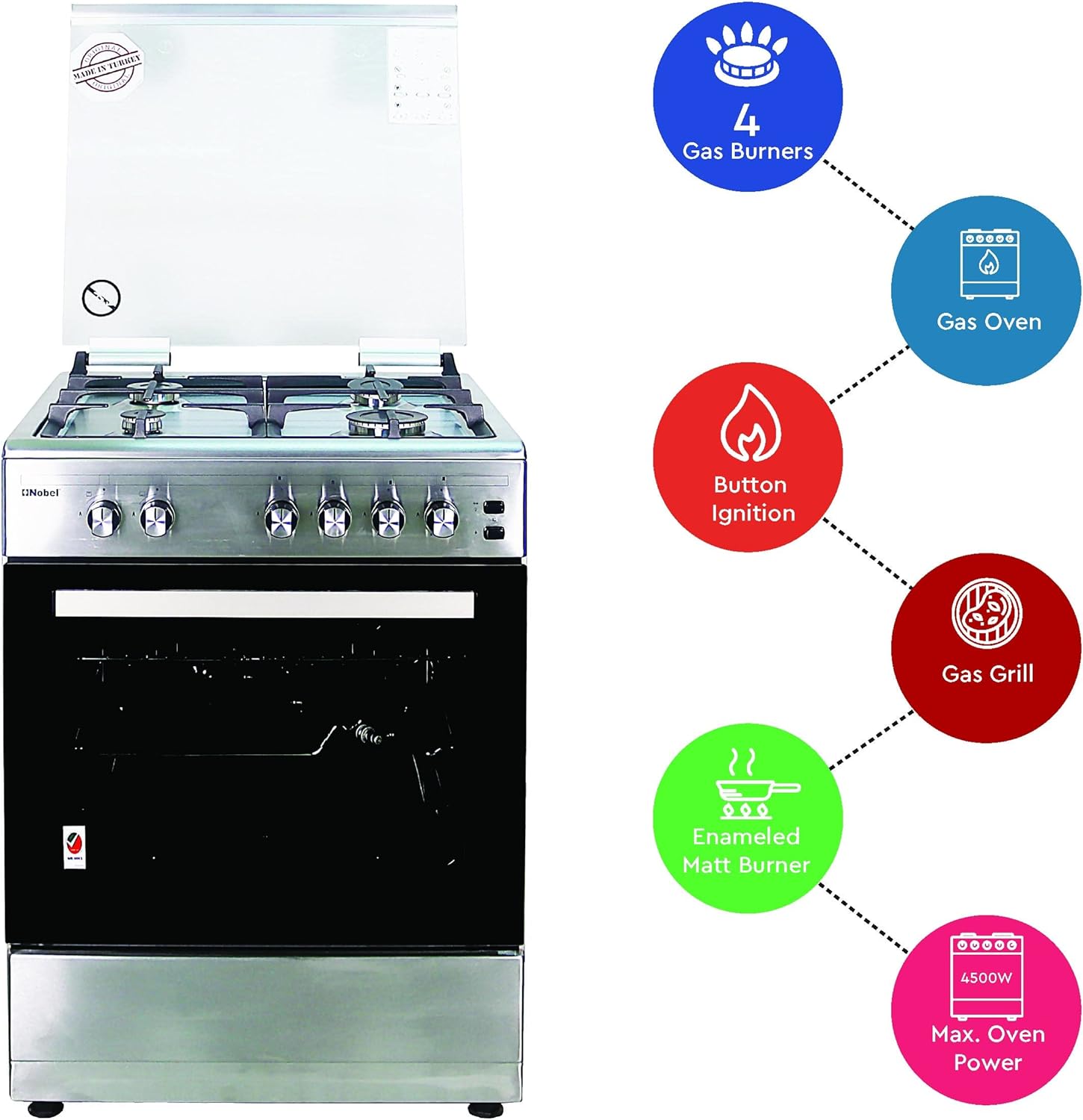 NOBEL GAS COOKER BLACK 60X60 CM 4 GAS BURNERS