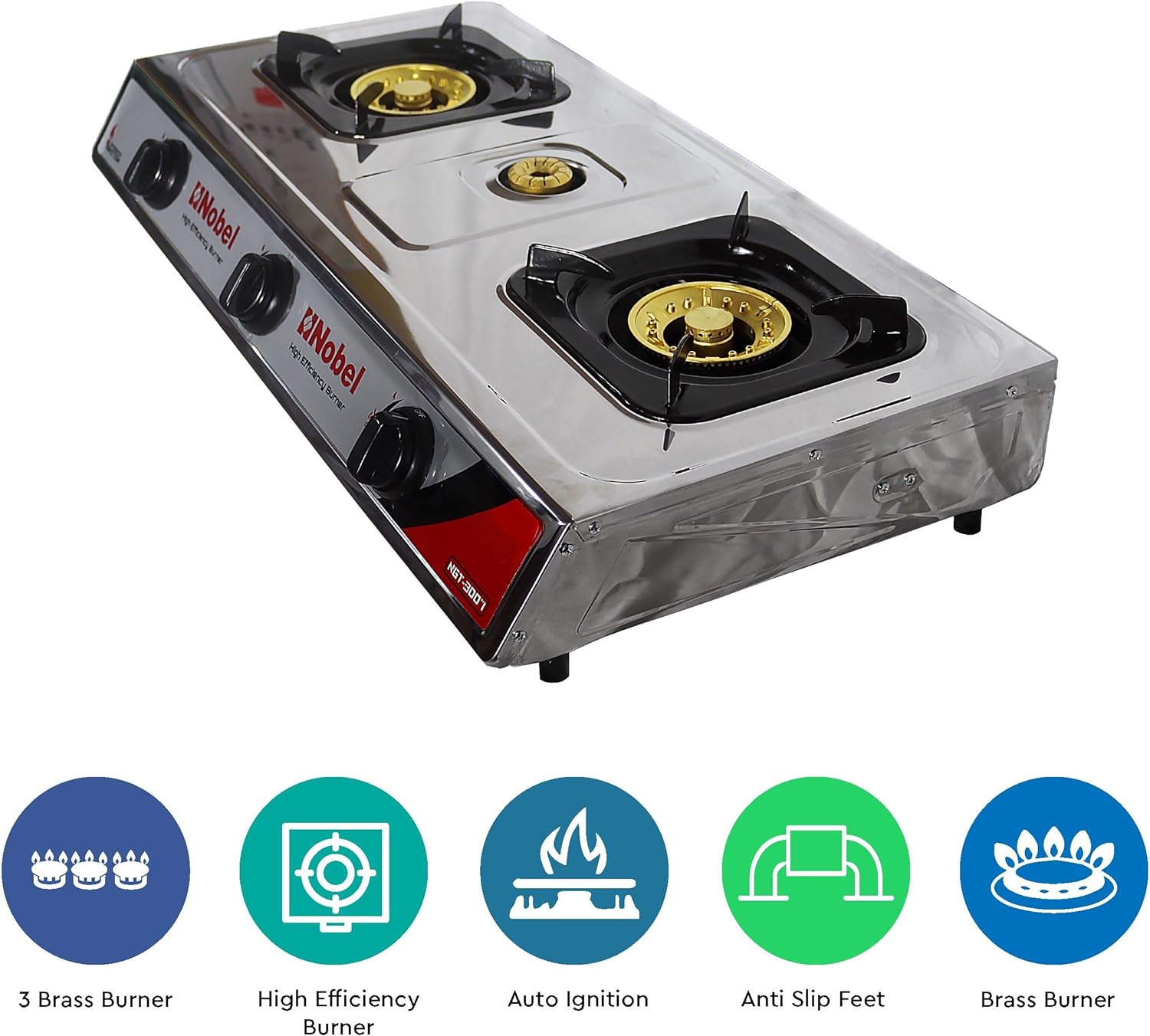 NOBEL GAS COOKER STAINLESS STEEL 60X60 CM 4 GAS BURNERS 6month warranty NOBEL-NGC6062