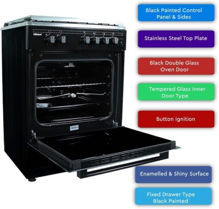 NOBEL GAS COOKER BLACK 60X60 CM 4 GAS BURNERS 6month warranty NOBEL-NGC6460