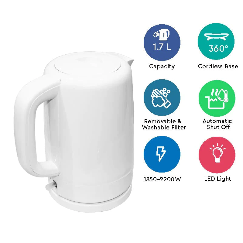 - 1.7 Litre Plastic Body Kettle