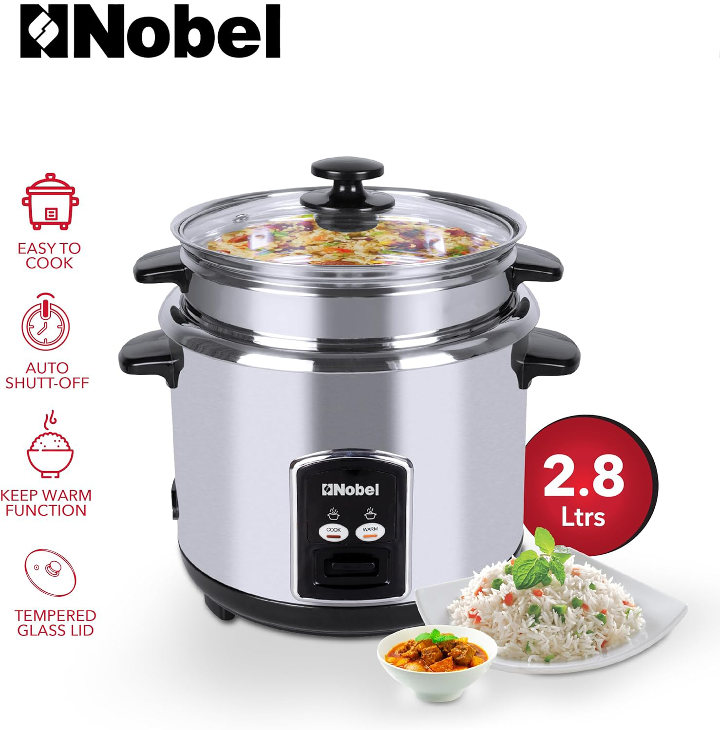 NOBEL RICE COOKER STAINLESS STEEL 2.8 LITRES 1000W