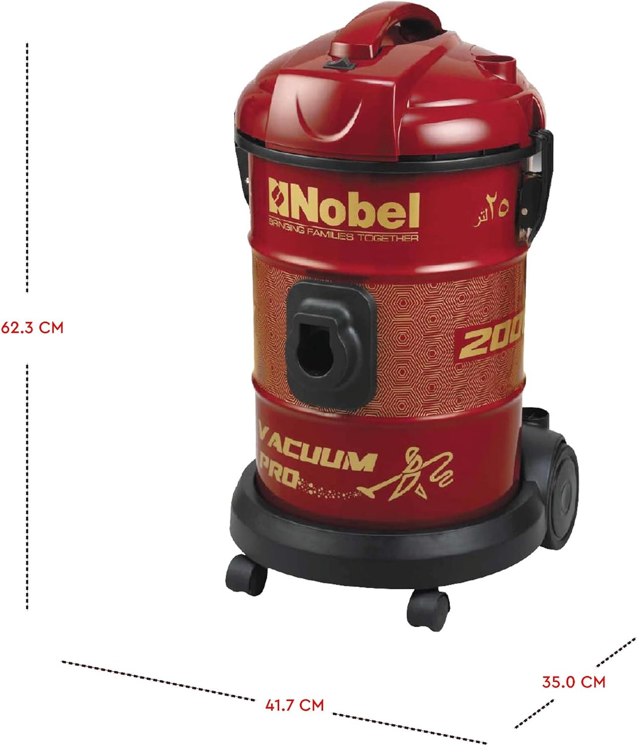 The Vacuum Cleaner((The Vacuum Cleaner)) With 2000W Capacity from Nobel, the powerful motor will allow you to clean your room , dining area , balcony, etc very neatly as it the motor is powerful. This Noble Vaccum Cleaner is one of the most demanded product in the market. | My Features((With 25 Litres Dust Bag Capacity)) With a 25 Litres Dust Bag Capacity Function, you don’t have to worry about cleaning as it is very easy clean. | Where to use((My Performance & Value Delivered)) Because we value our consumers, we put a lot of emphasis on durability, efficiency, and Quality. With a 2000W capacity, it helps you to clean your room, dining area , balcony, etc | Technical Specifications((My Specifications)) Colour: Red, Drum Type 2000W 220-240V/50-60Hz 25 Litres Dust Bag Capacity Dust Indicator Smooth Roller For Better Agility Wheels Solid & Durable Iron Tank Accessory Holde. Product Dimensions: 35 x 38.5 x 62.3 (W x D x H) cm. Packaging Dimensions: 43.5 x 41.7 x 66.5 (W x D x H) cm. Gross Weight: 9.2 Kgs. Net Weight: 7.56 Kgs. |
