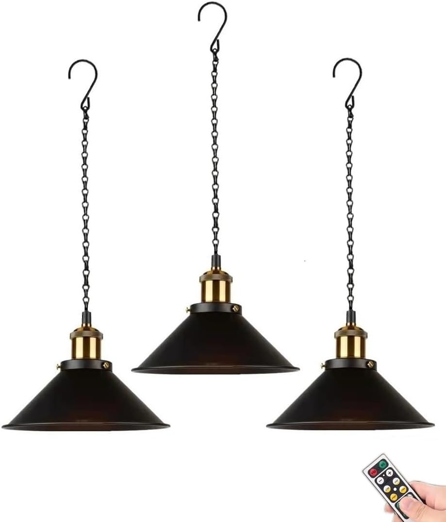 - Portable Battery Powered Hanging Lights: Without needing wiring or electricians are required. Black chain hanging pendant lamp with metal hook, uses 39 inches adjustable pendant light chain that let you get the perfect lighting effect you want.Our industrial pendant light chandelier fixture a classic simplestyle, perfect for indoor outdoor lighting and decor.