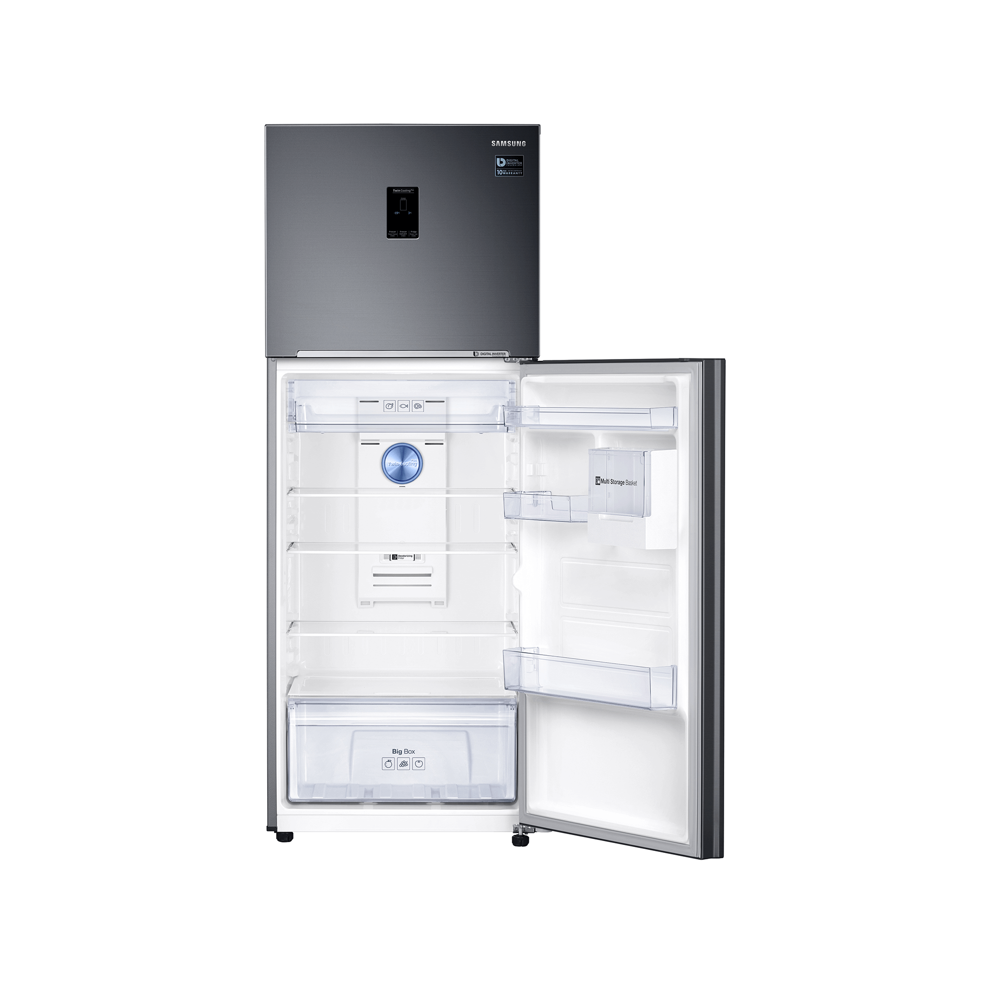 Ultimate Freshness Twin Cooling Plusâ„¢ technology cools the fridge and freezer compartments separately with two independent cooling systems, creating an optimal environment for keeping food fresh longer with 70% humidity, compared to 30% in a conventional top-mount freezer. delicious, Odour-Free Frozen Food Twin Cooling Plusâ„¢ system prevents unpleasant odors from mixing between the fridge and freezer, ensuring the original flavor of ingredients stored in the freezer is preserved and odorless. 4 Conversion Modes for flexible storage to fit your needs Enjoy the convenience of having 4 different conversion modes to choose from this Samsung Top Mount Freezer. Easily convert your freezer into a fridge at a push of a button, ideal for when you need more space to store your fresh food. Or simply switch off the fridge compartment when leaving your home for a long vacation to conserve energy. Guaranteed Durability Digital Inverter Technology automatically adjusts the compressor speed in response to cooling demand. This helps to minimize noise and reduces wear and tear for longer-lasting performance.