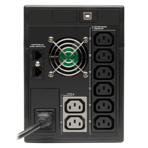 Featuring eight IEC-320-C13 outlets and a C14 inlet that accepts a user-supplied AC power cord, the SMX1500LCDT has an internal battery that provides 10 minutes of support at half load. It can also power an entry-level PC up to 90 minutes. Two of the eight outlets provide surge protection only for printers and other non-essential devices A front-panel LCD screen lets you configure settings and monitor operating data, such as voltage, battery and load statuses.